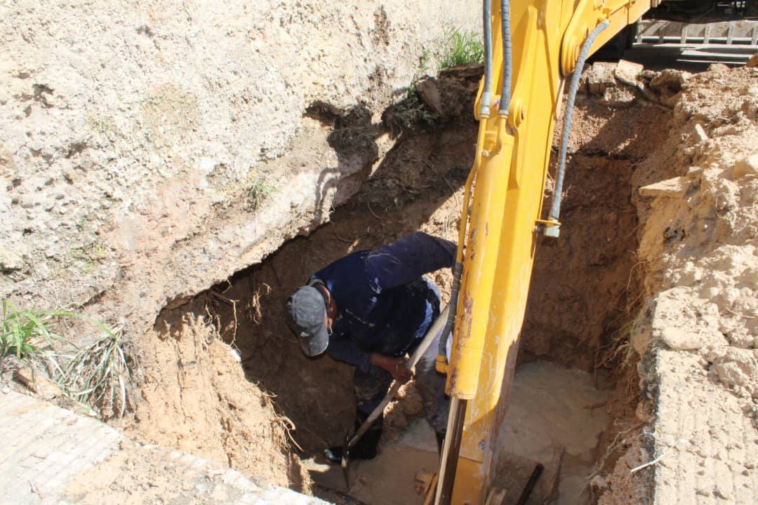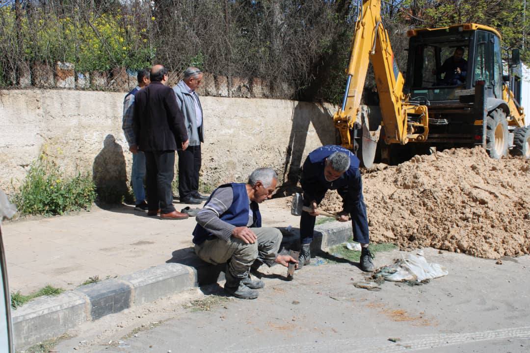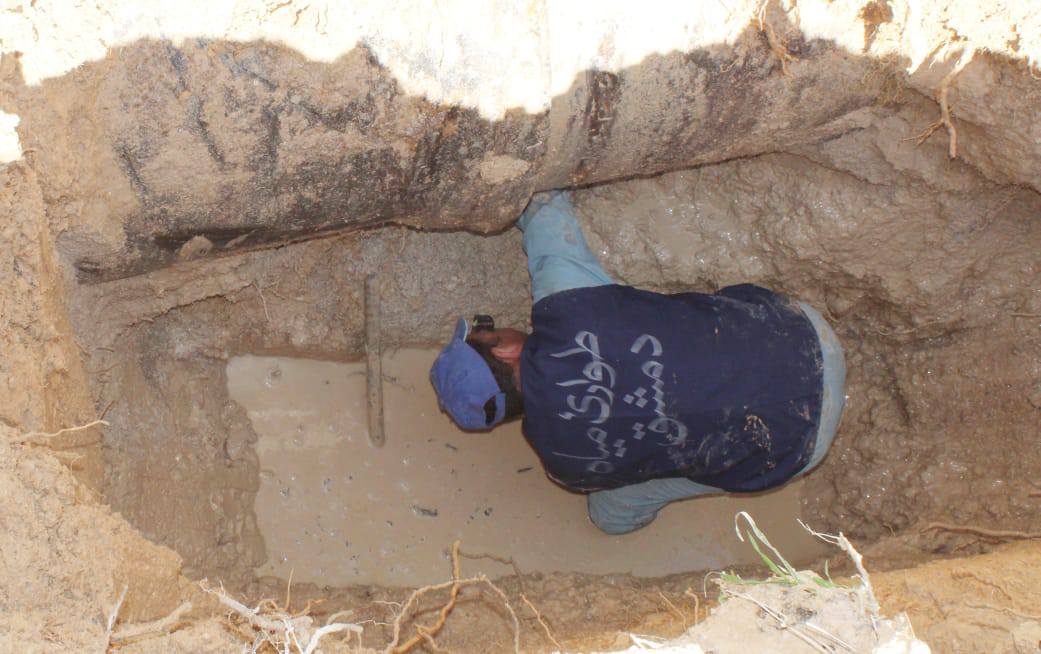 أعمال إصلاح خط المياه الرئيسي في منطقة أوتستراد العدوي